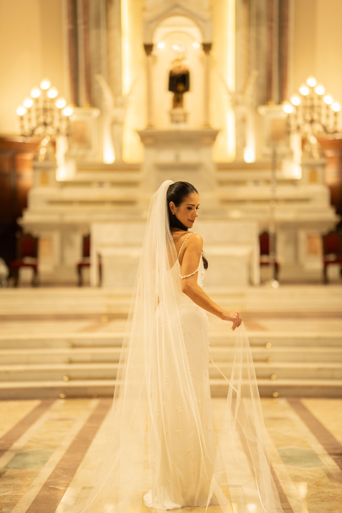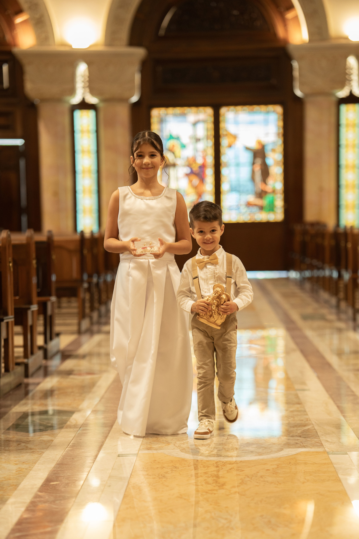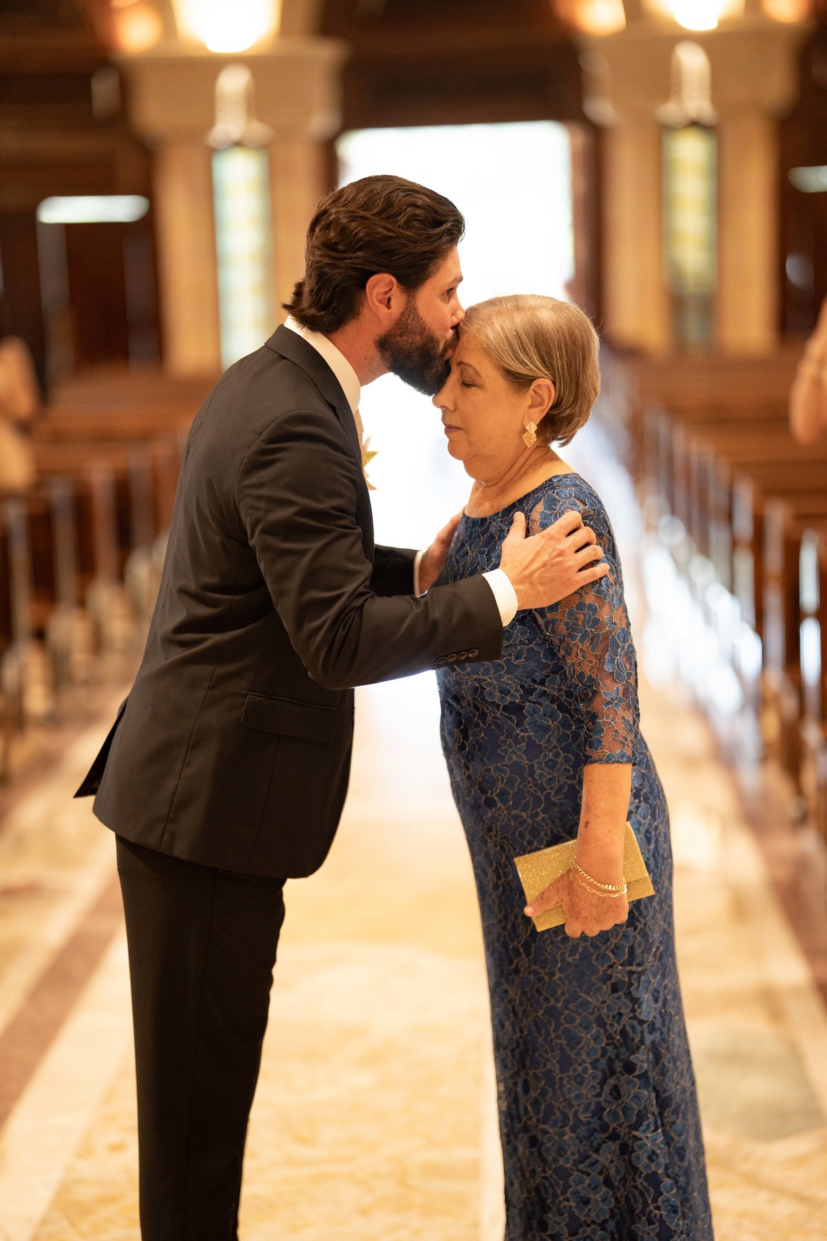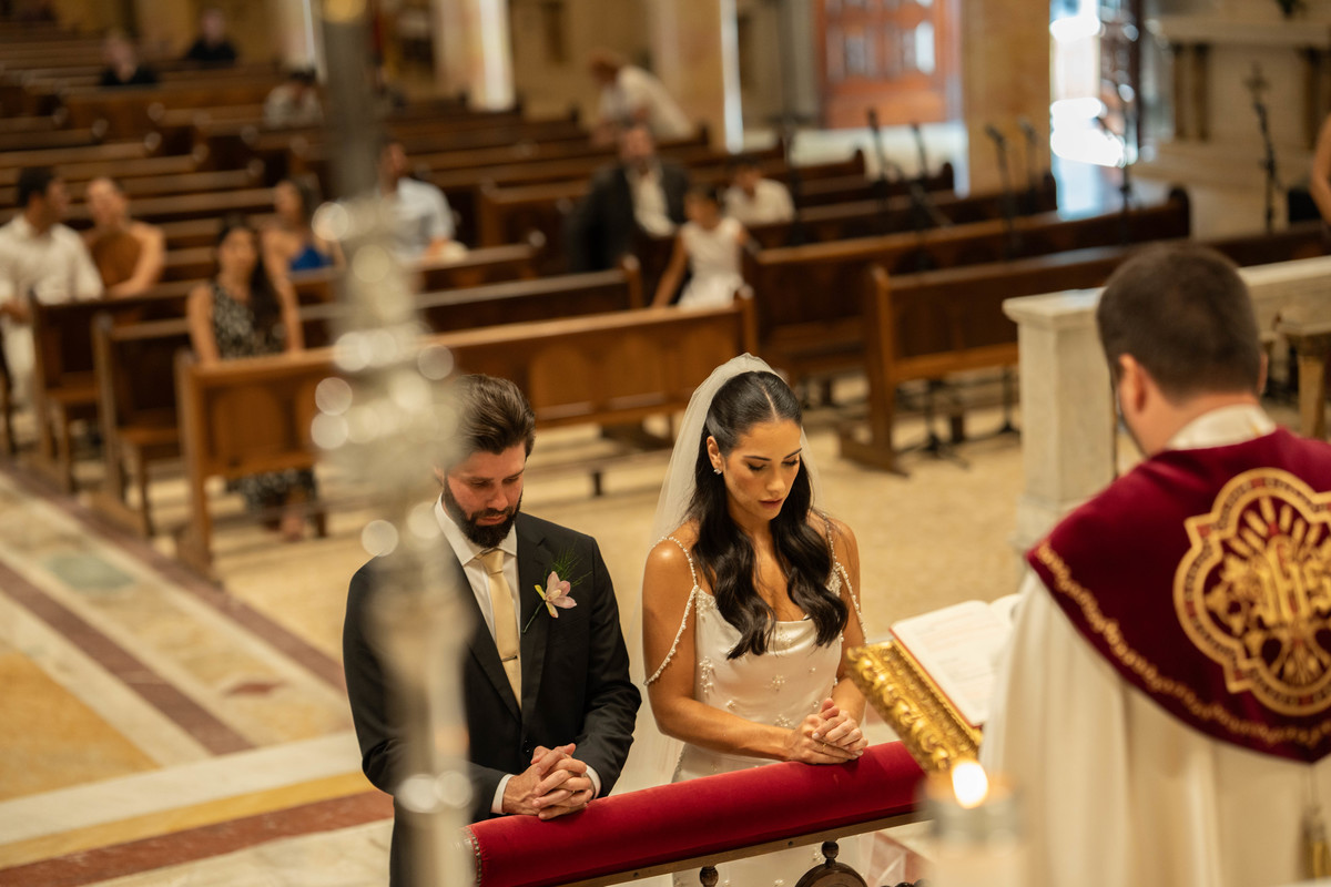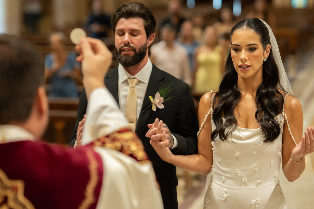 E, para esse momento, escolhi caminhar por uma estética mais clássica, quase atemporal, em sintonia com a imponência e a beleza da catedral.