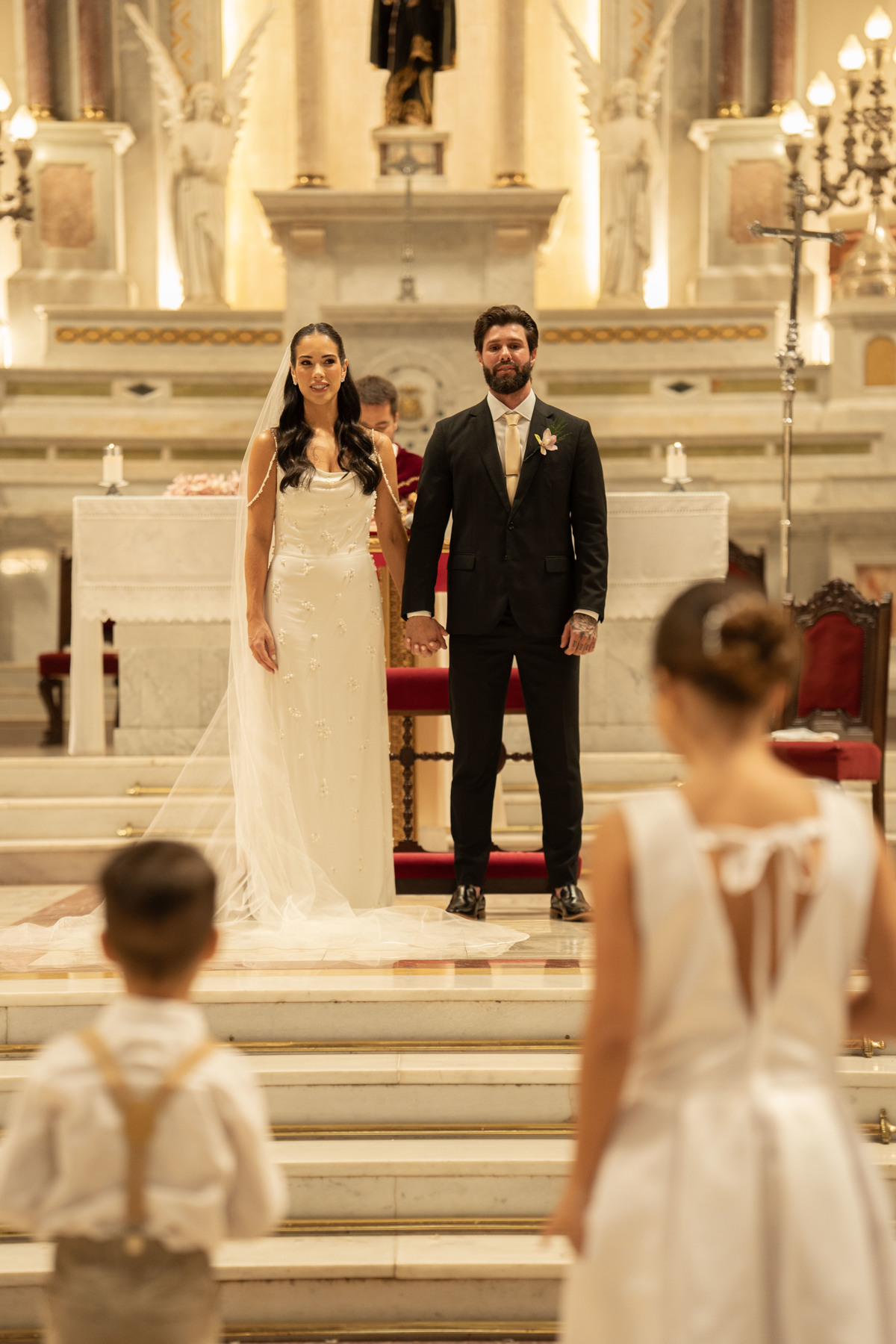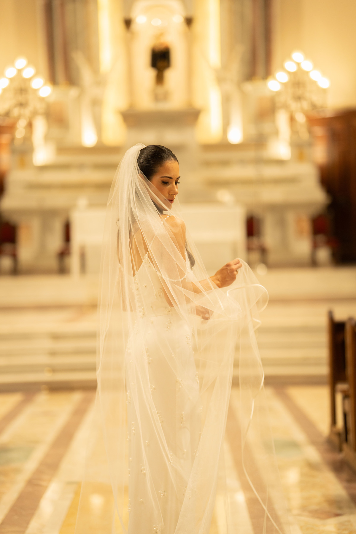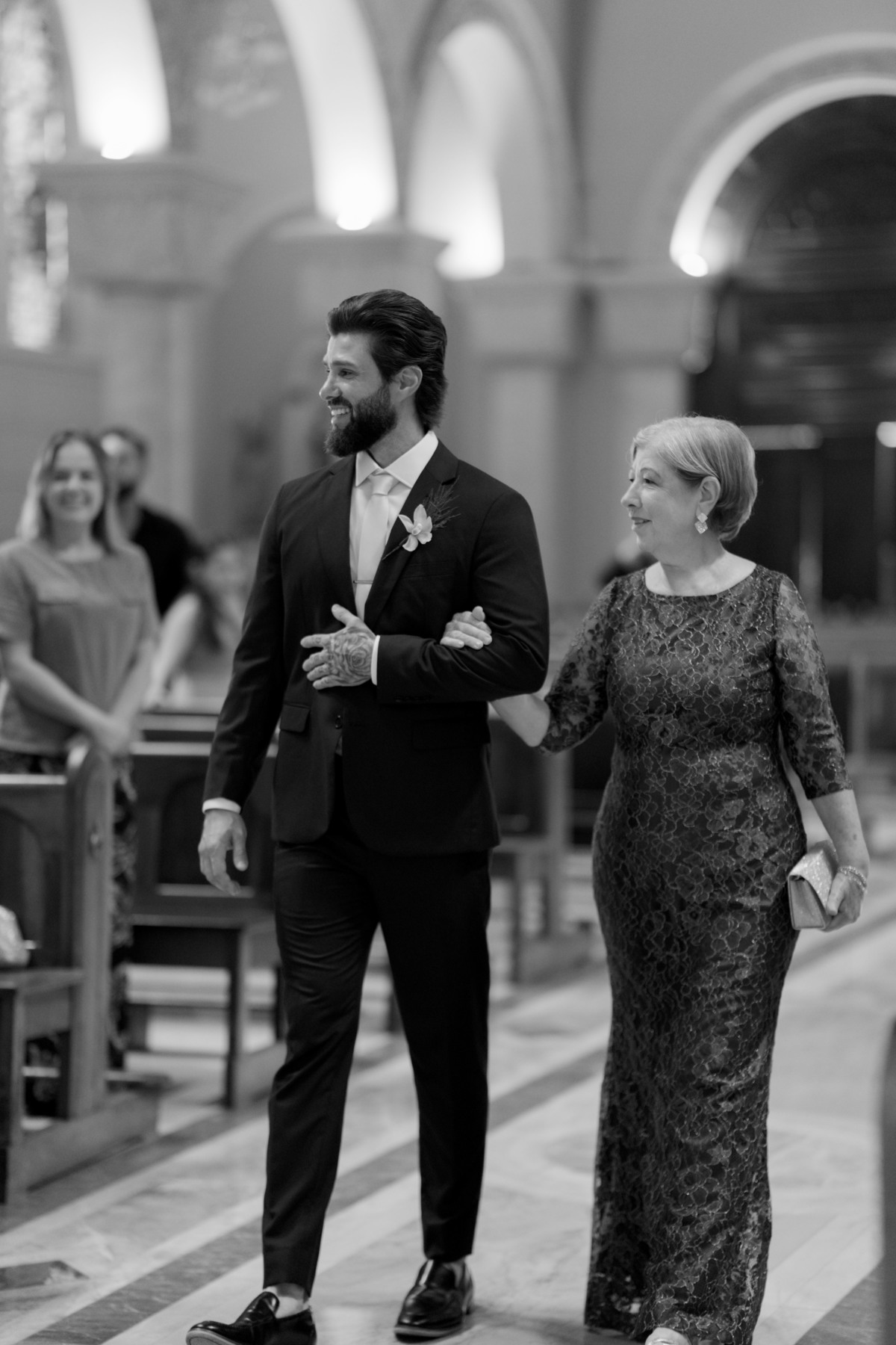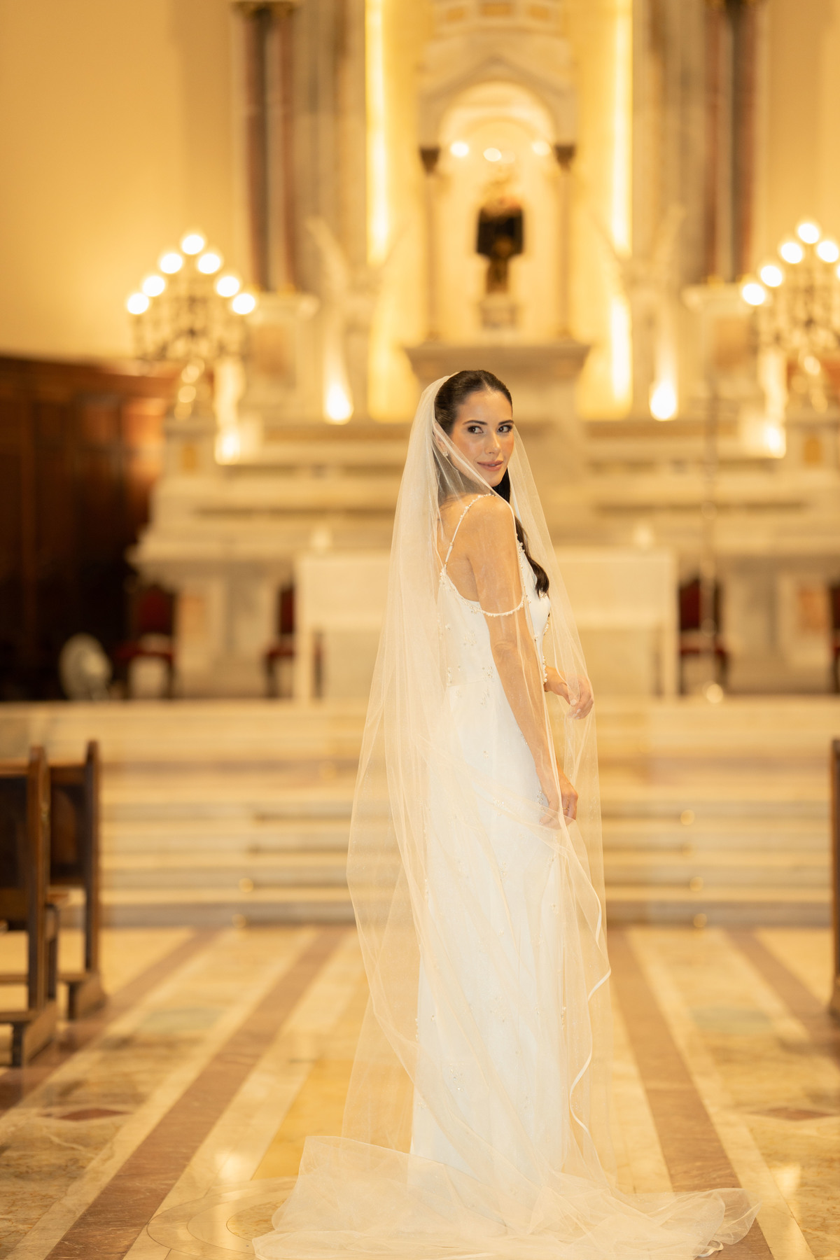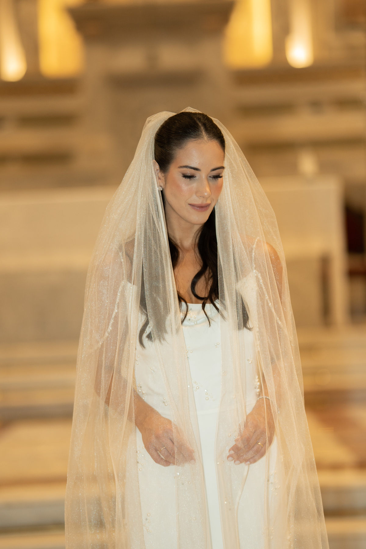 E, para esse momento, escolhi caminhar por uma estética mais clássica, quase atemporal, em sintonia com a imponência e a beleza da catedral.