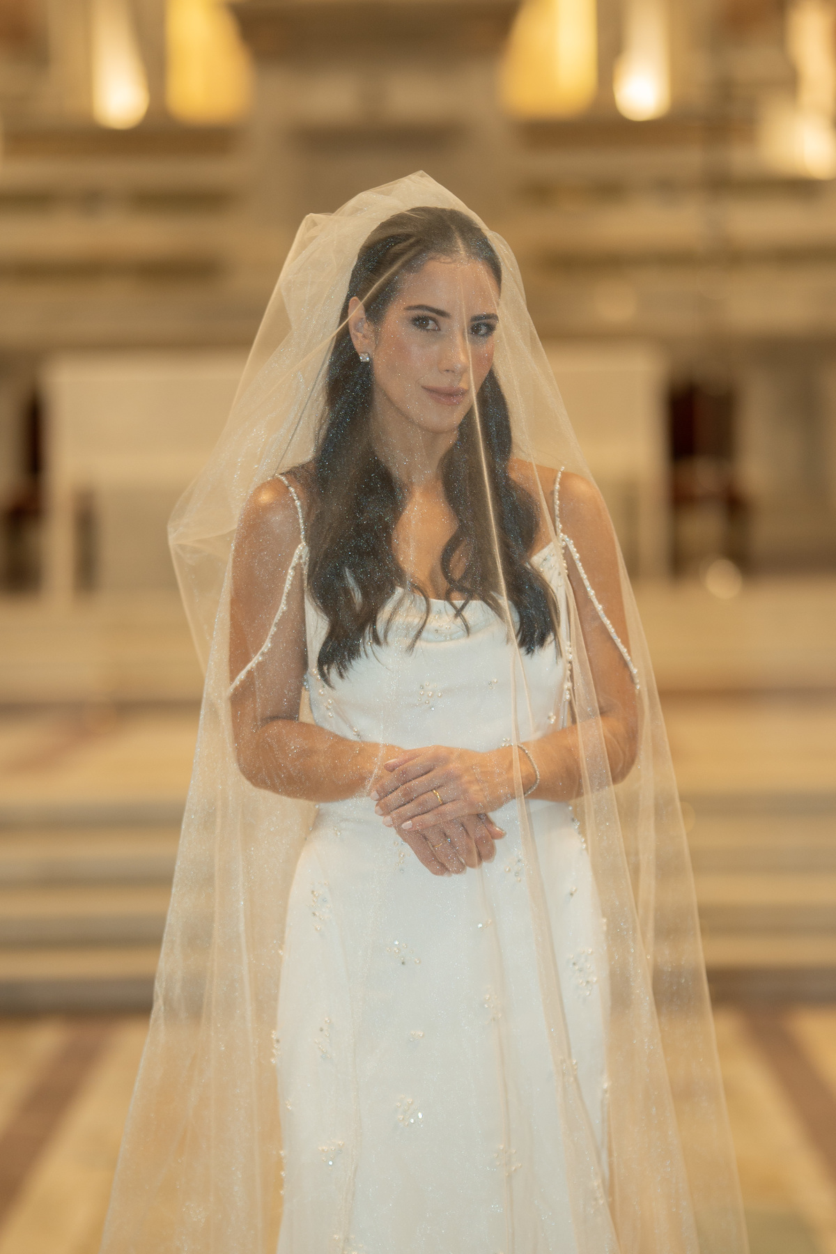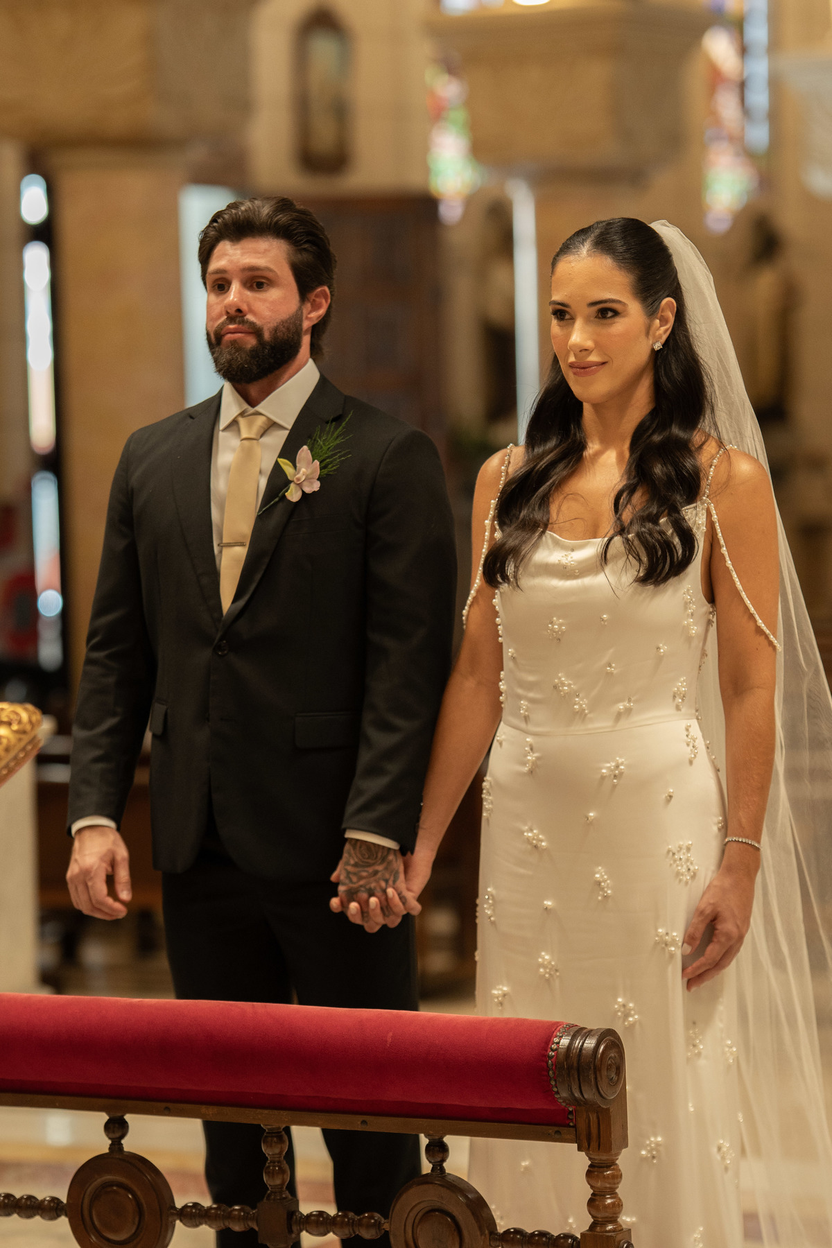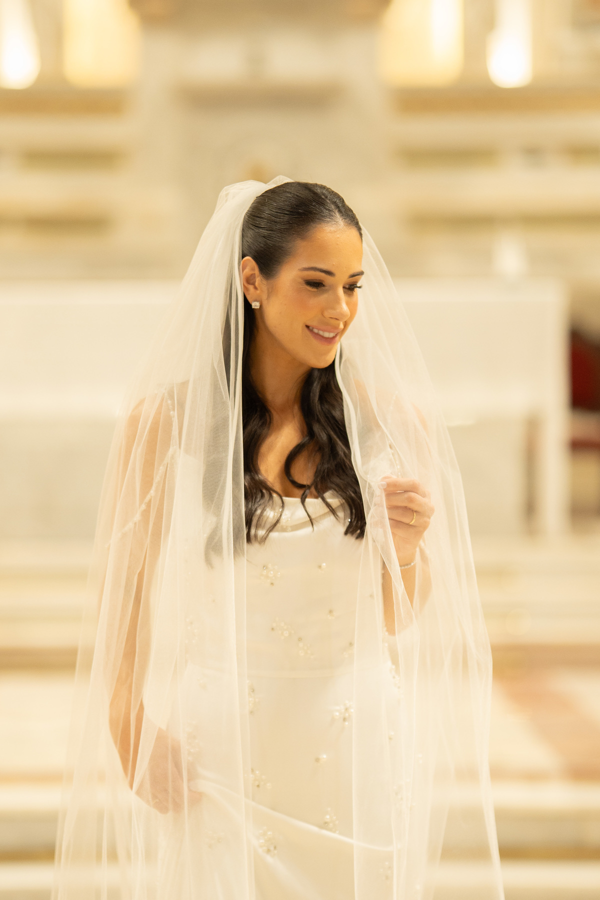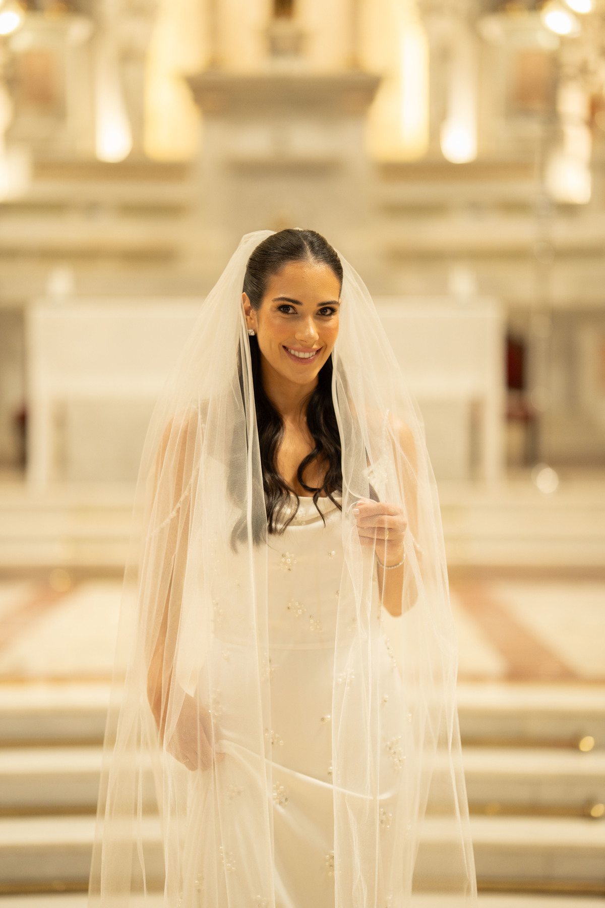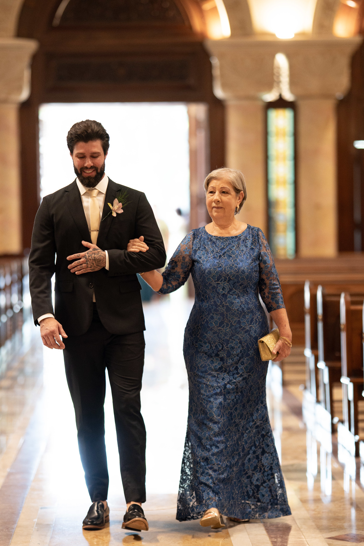 E, para esse momento, escolhi caminhar por uma estética mais clássica, quase atemporal, em sintonia com a imponência e a beleza da catedral.