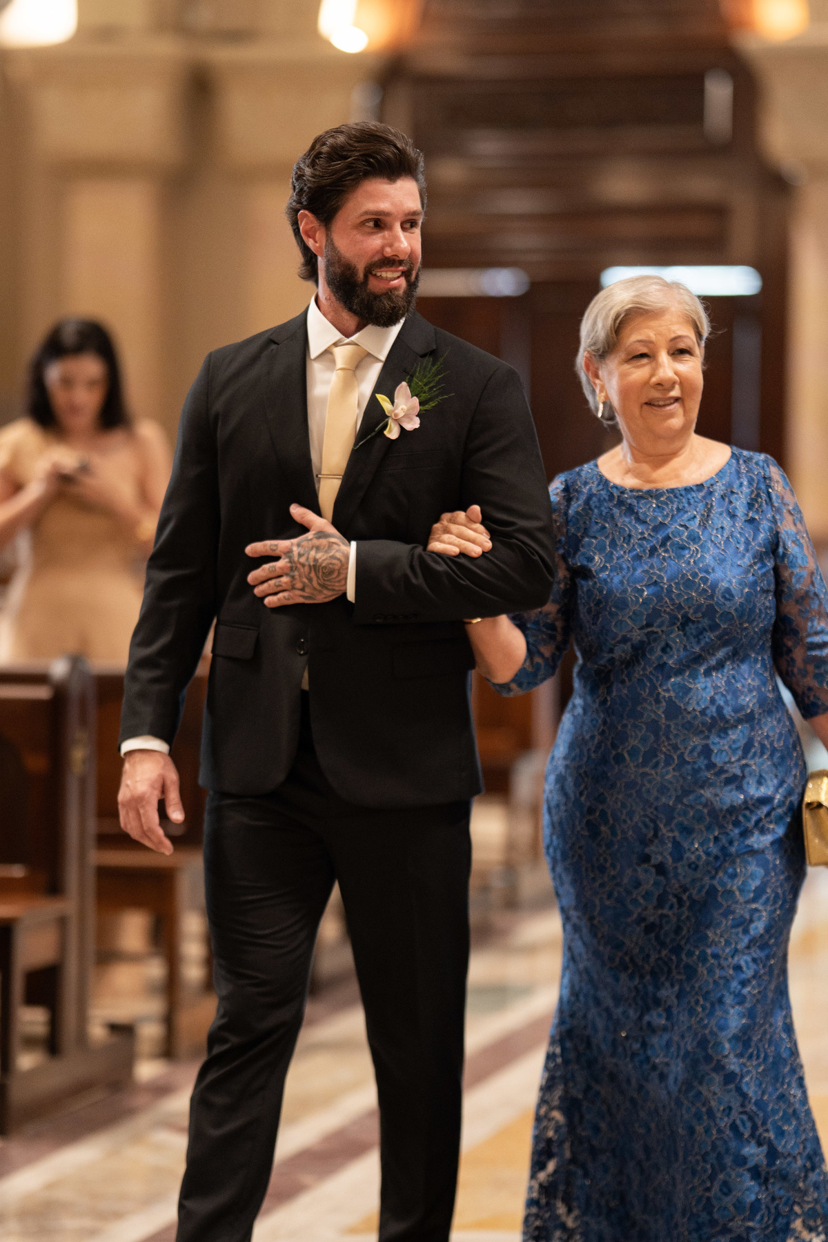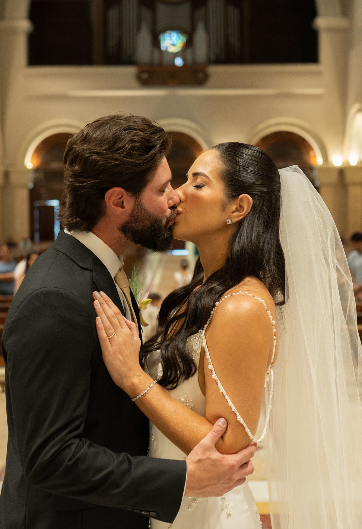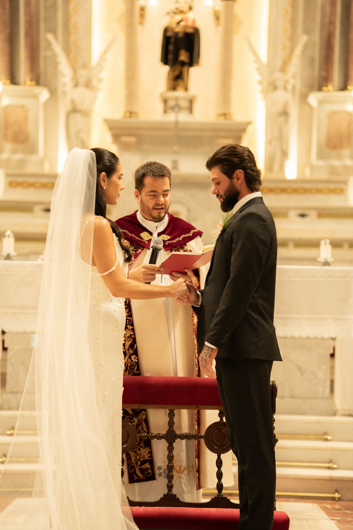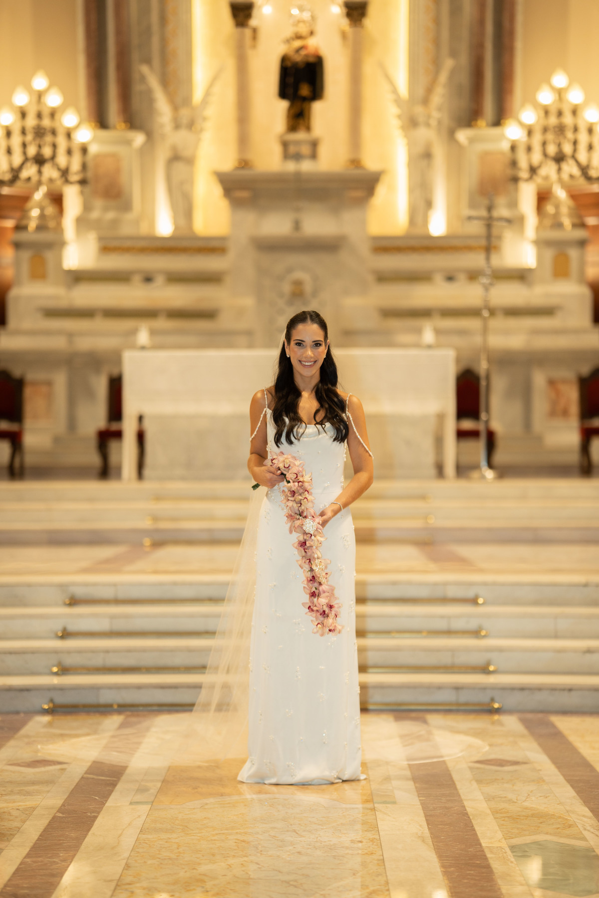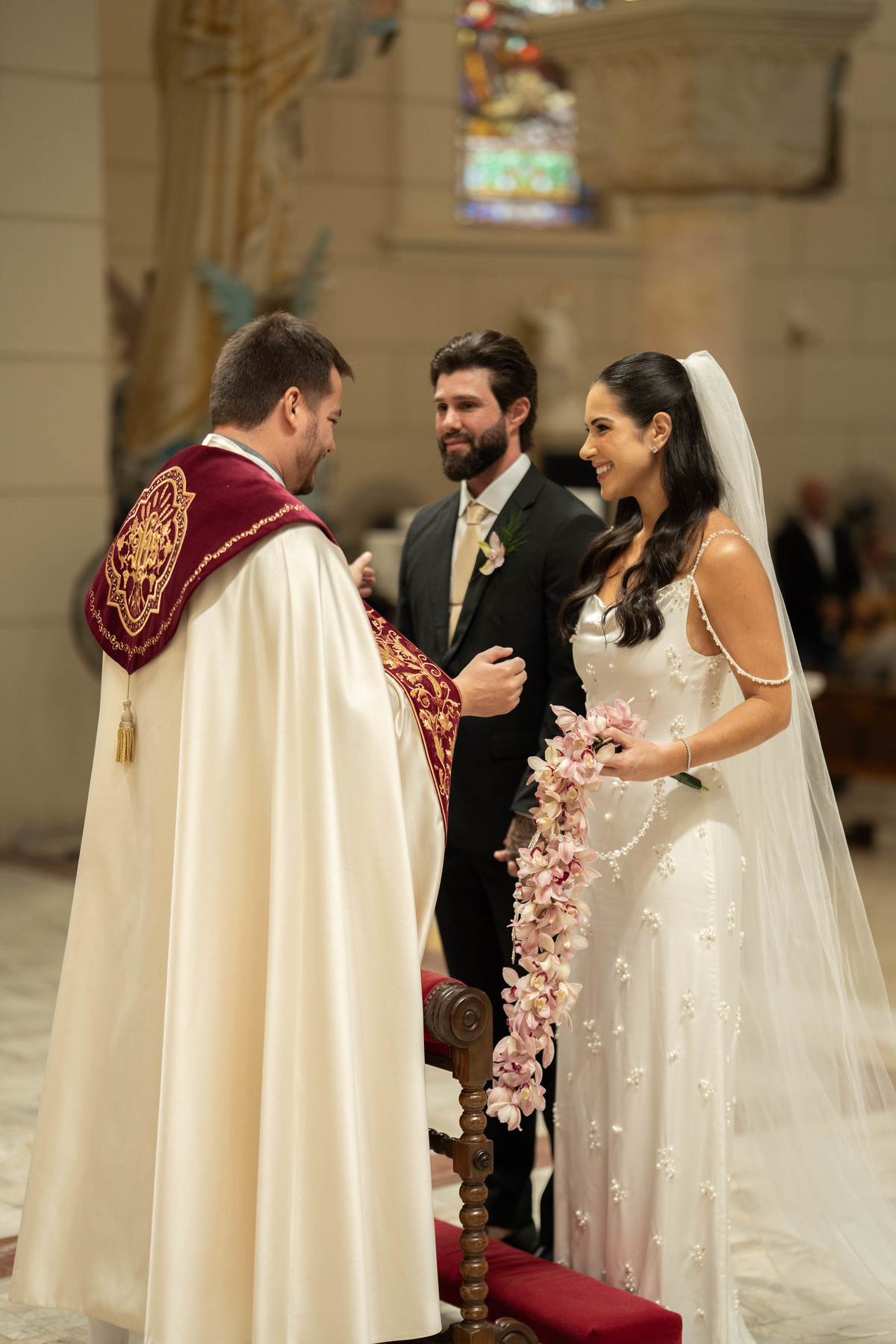 E, para esse momento, escolhi caminhar por uma estética mais clássica, quase atemporal, em sintonia com a imponência e a beleza da catedral.