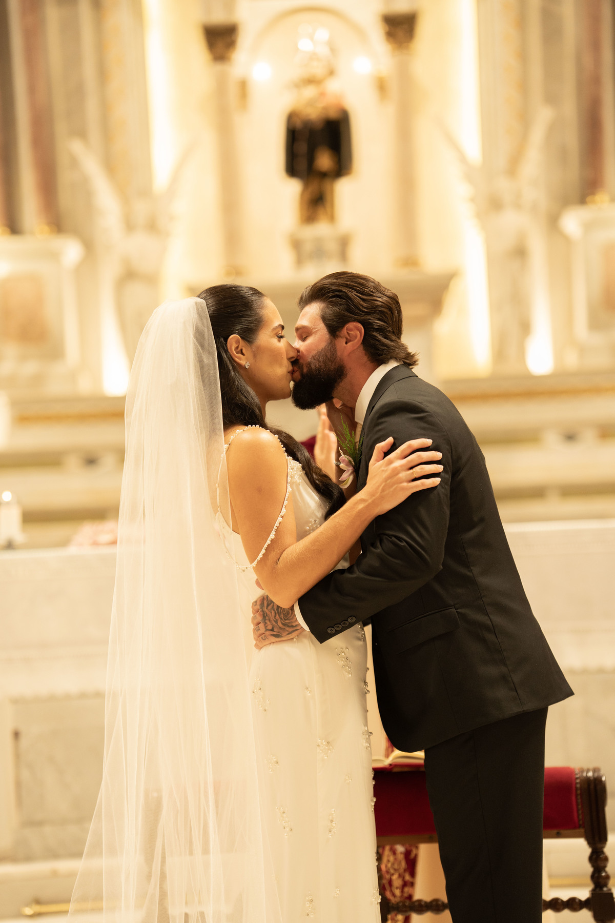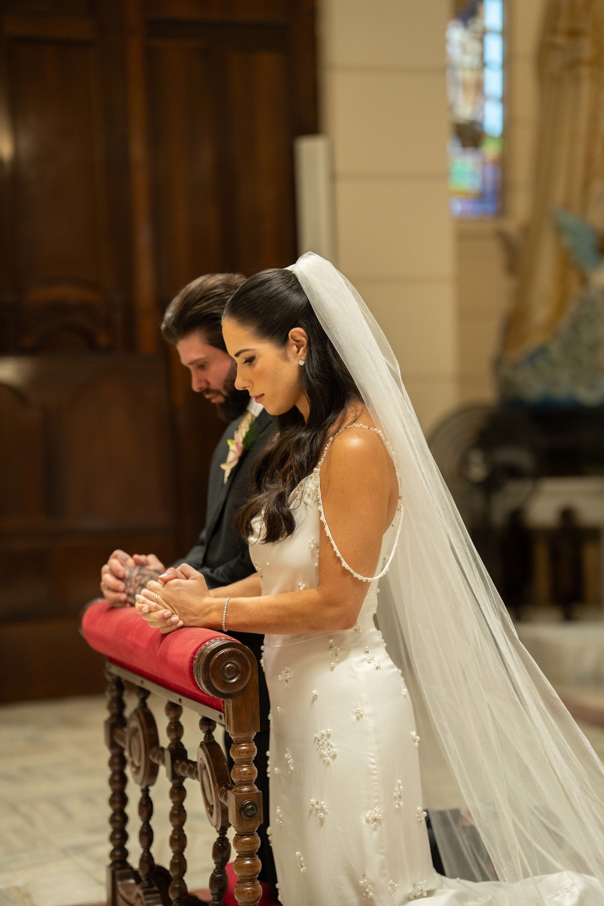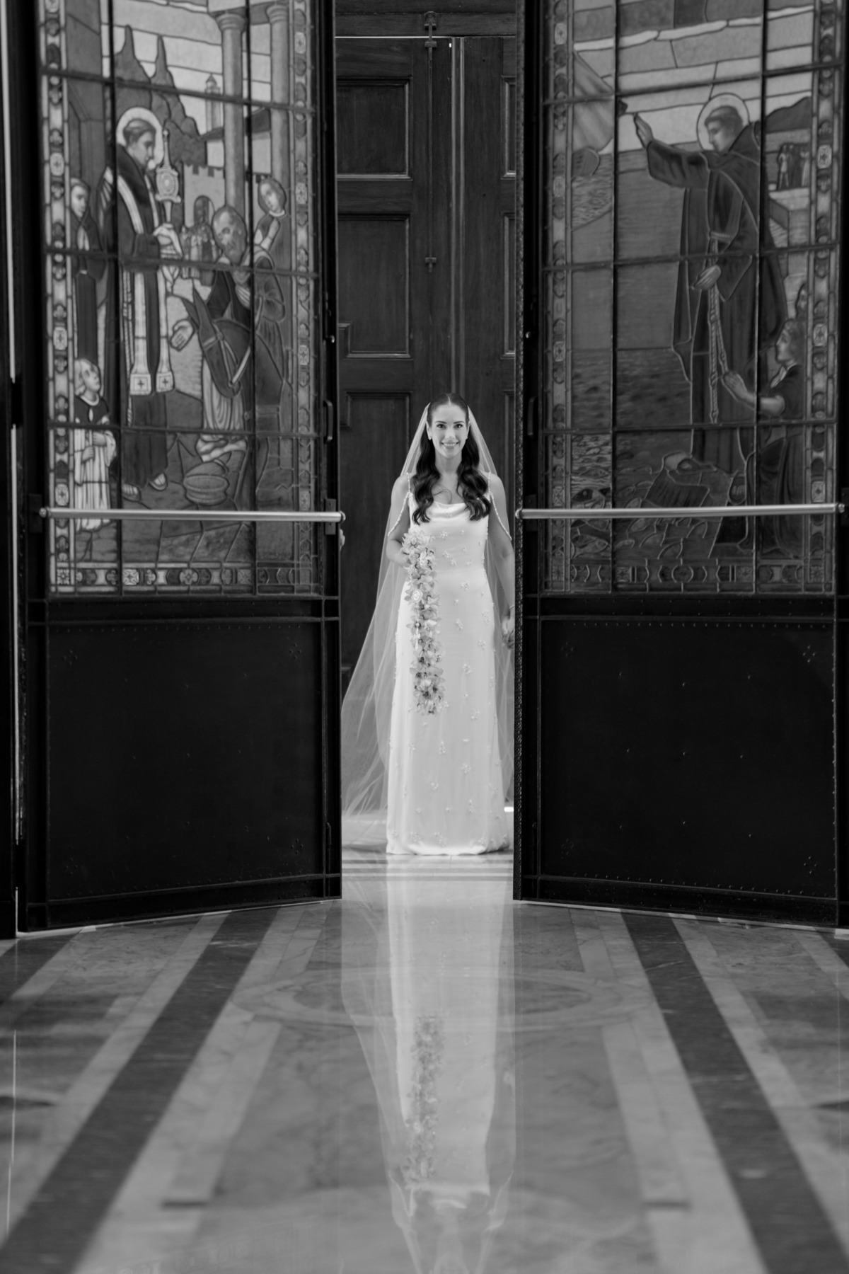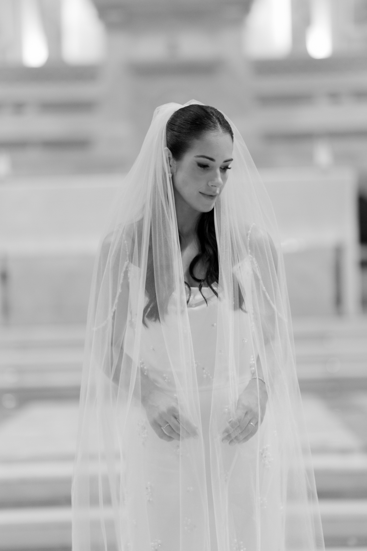 E, para esse momento, escolhi caminhar por uma estética mais clássica, quase atemporal, em sintonia com a imponência e a beleza da catedral.