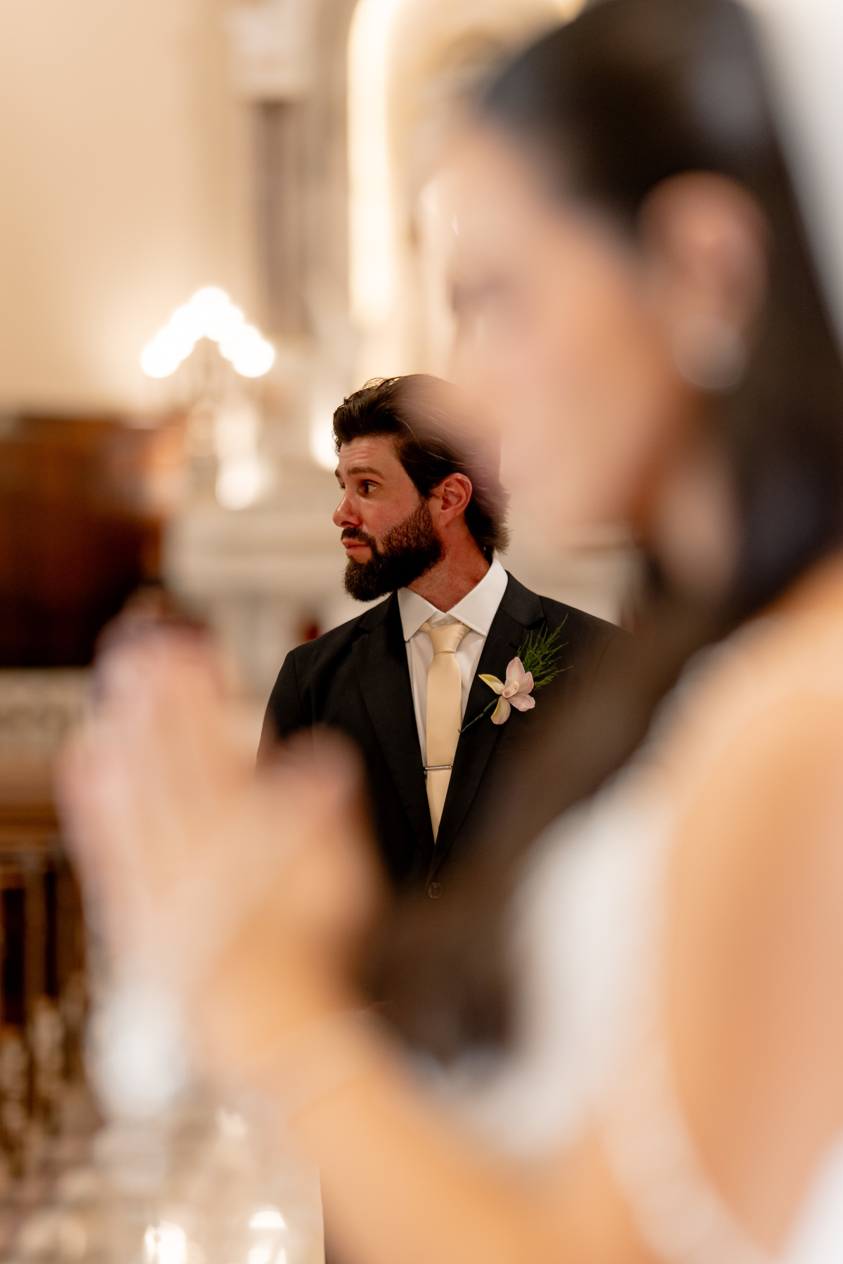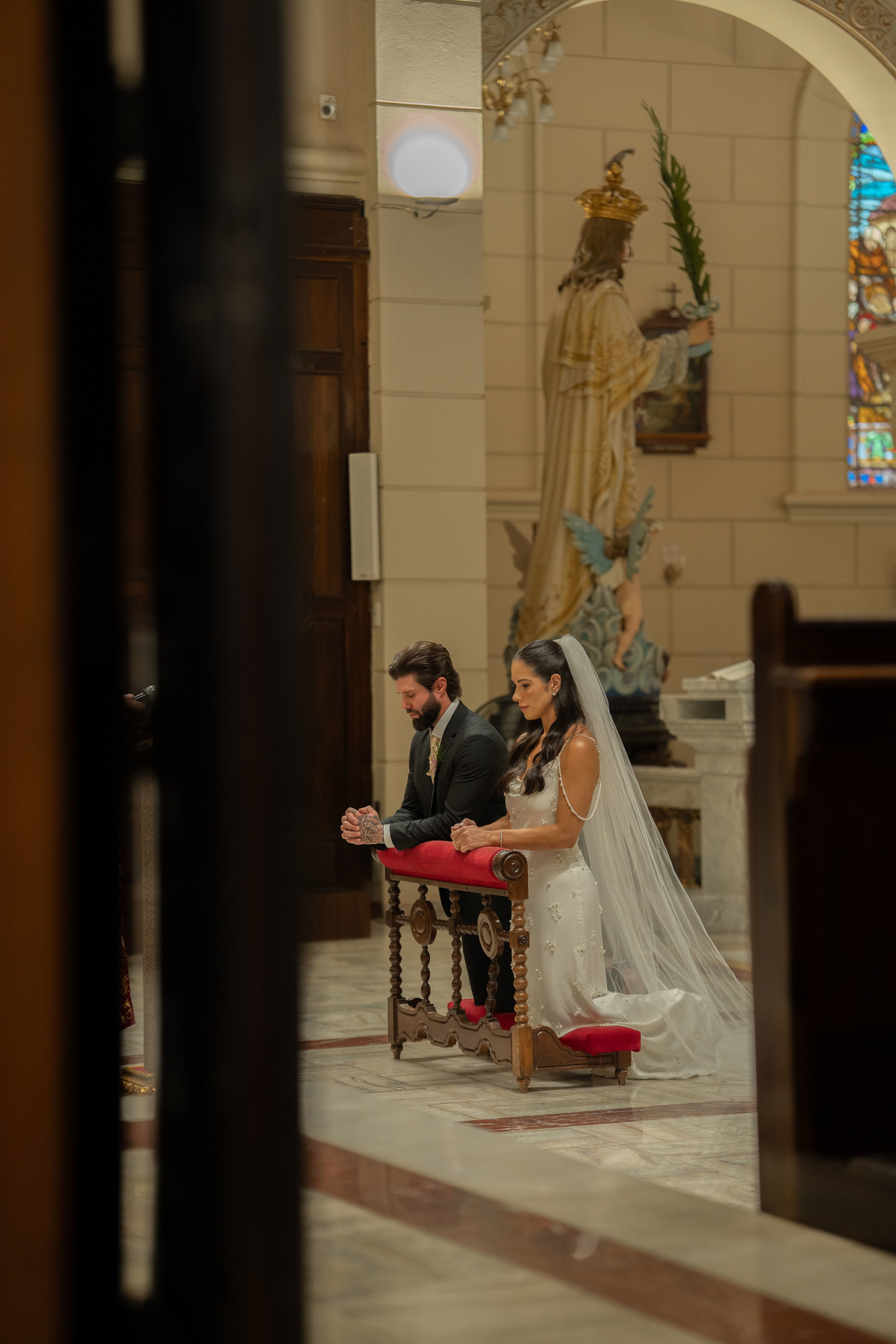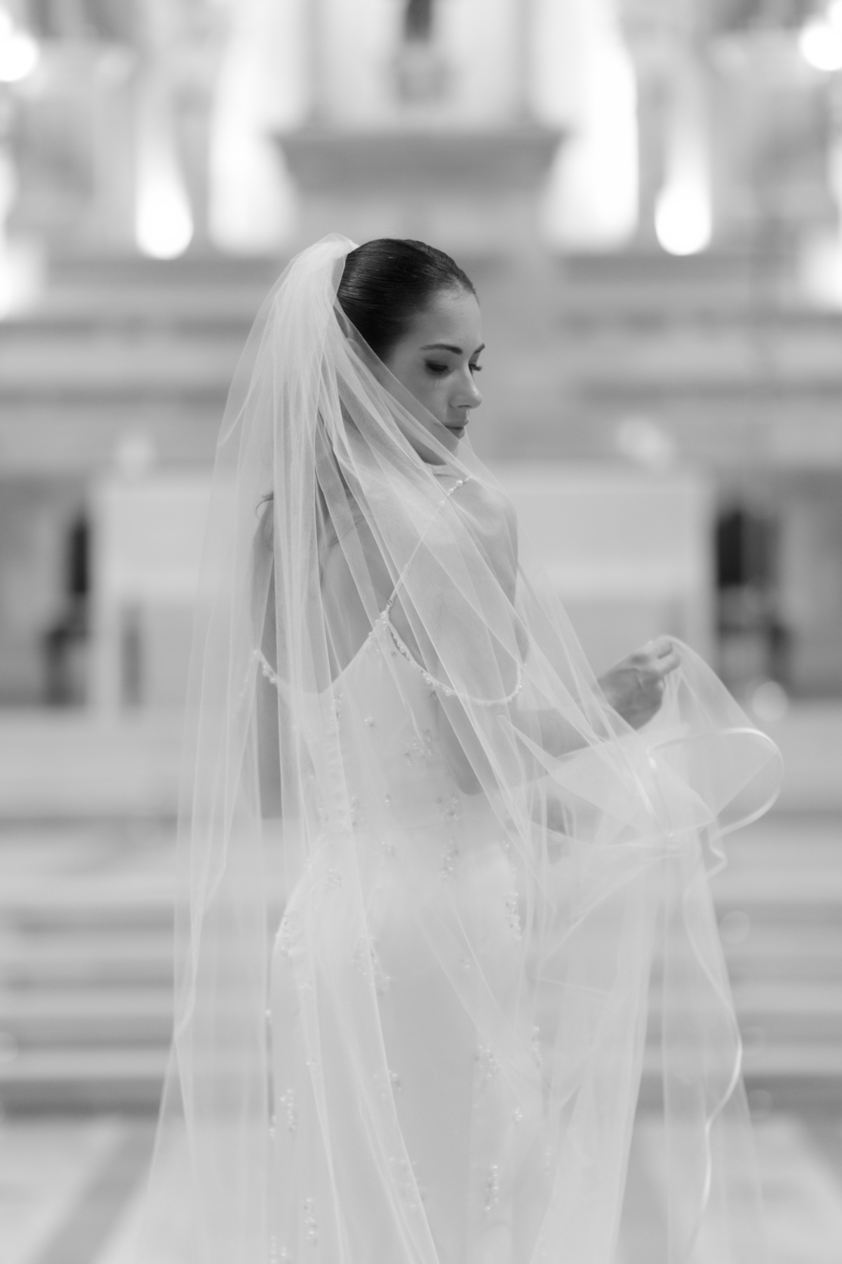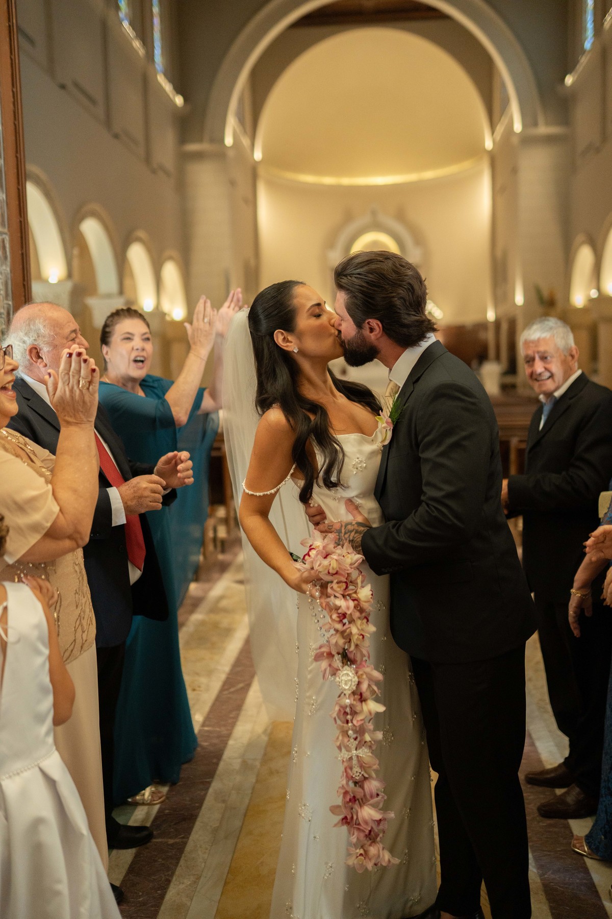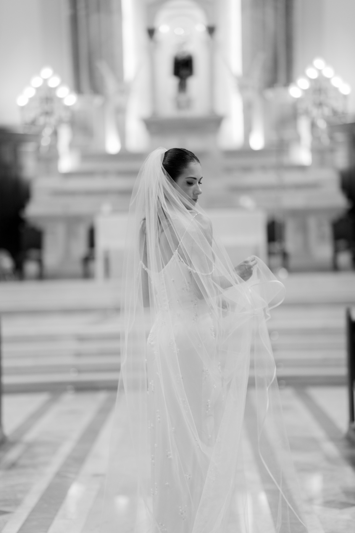 E, para esse momento, escolhi caminhar por uma estética mais clássica, quase atemporal, em sintonia com a imponência e a beleza da catedral.