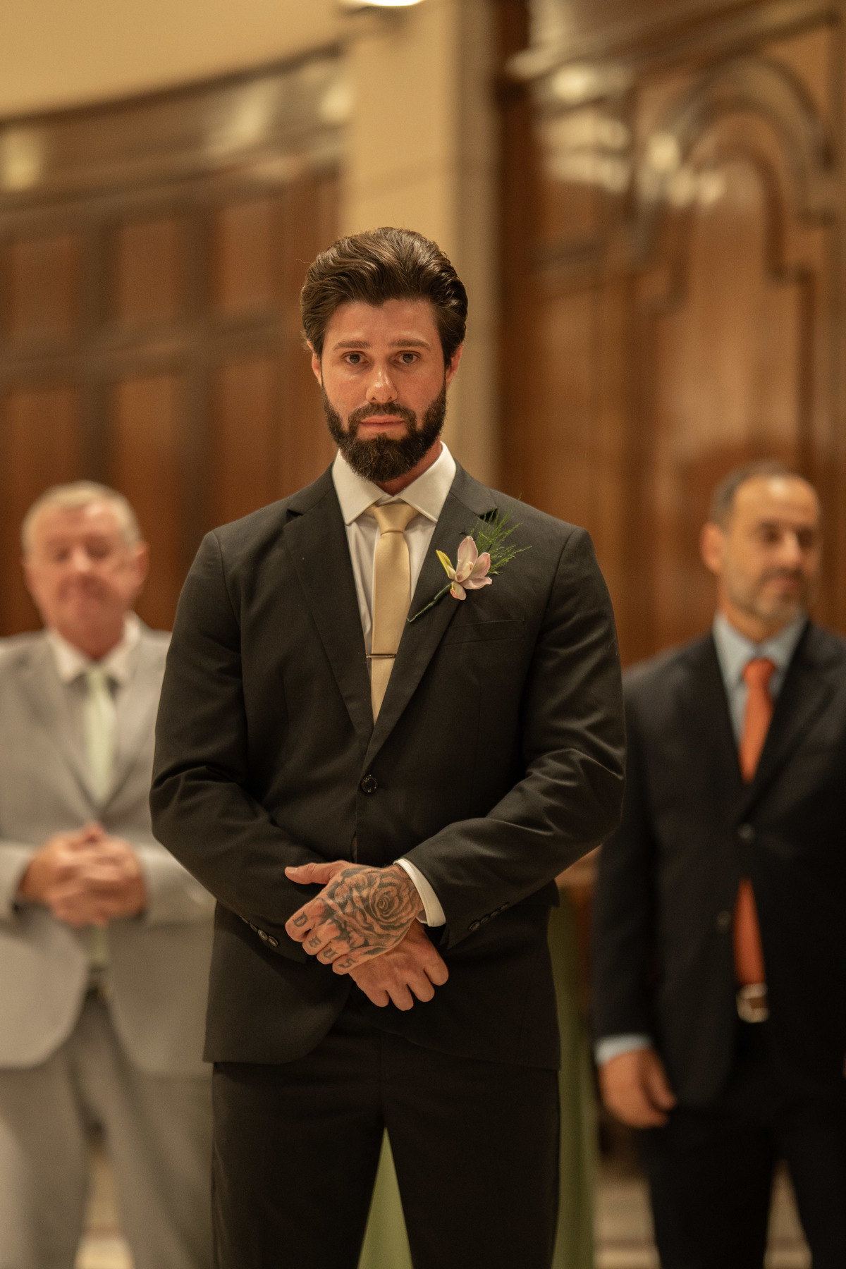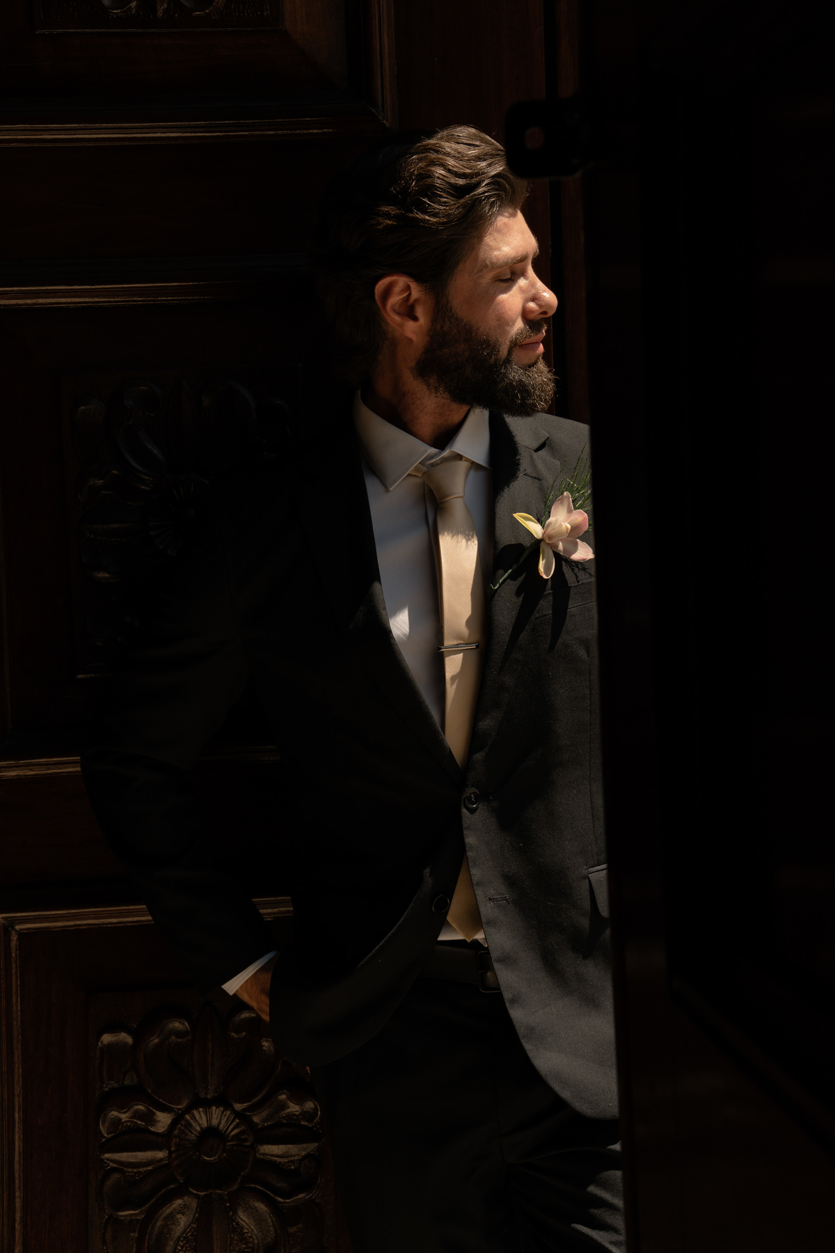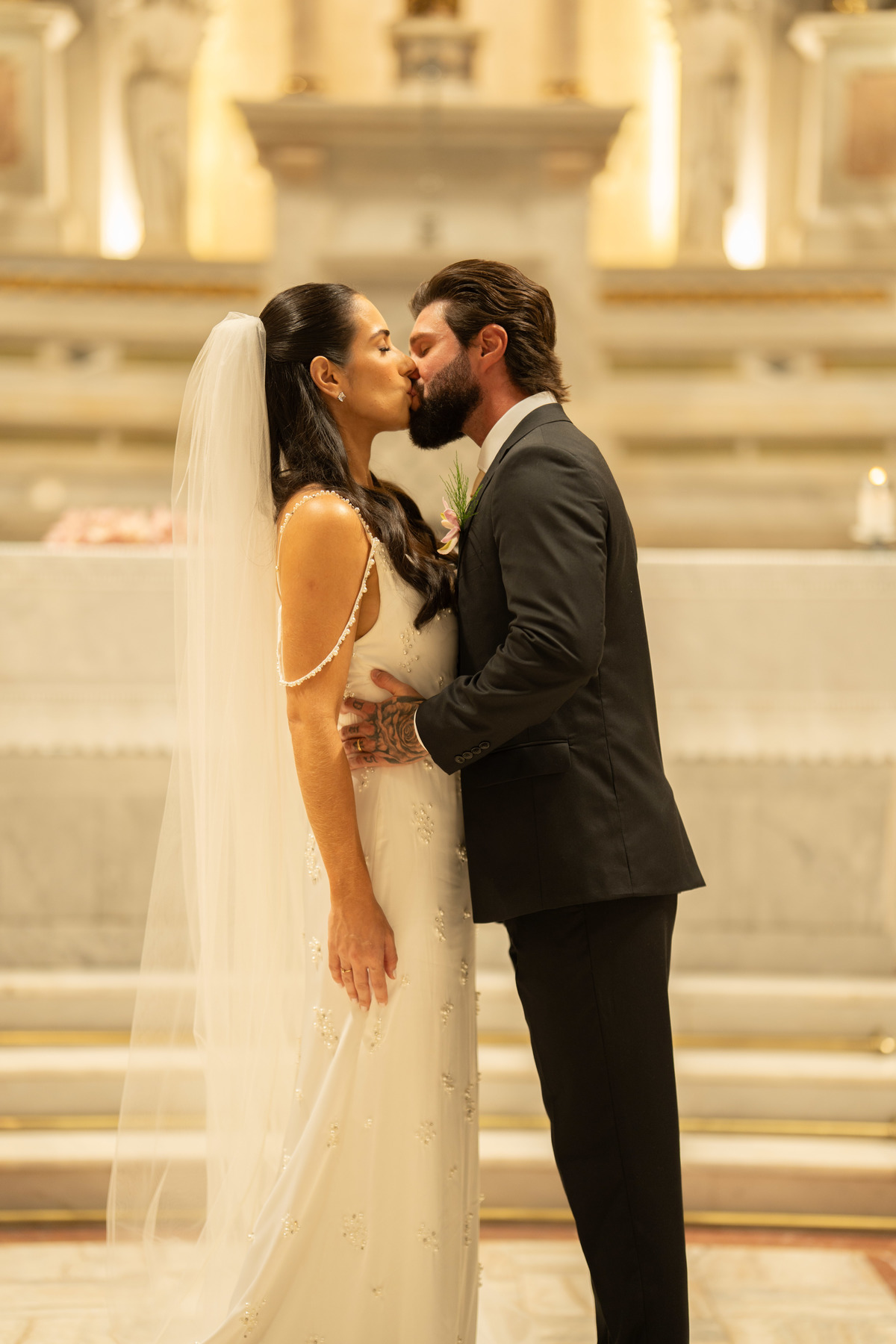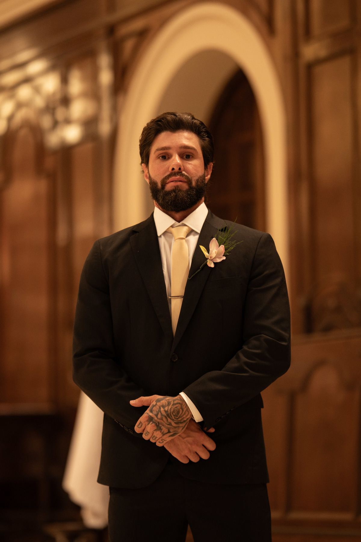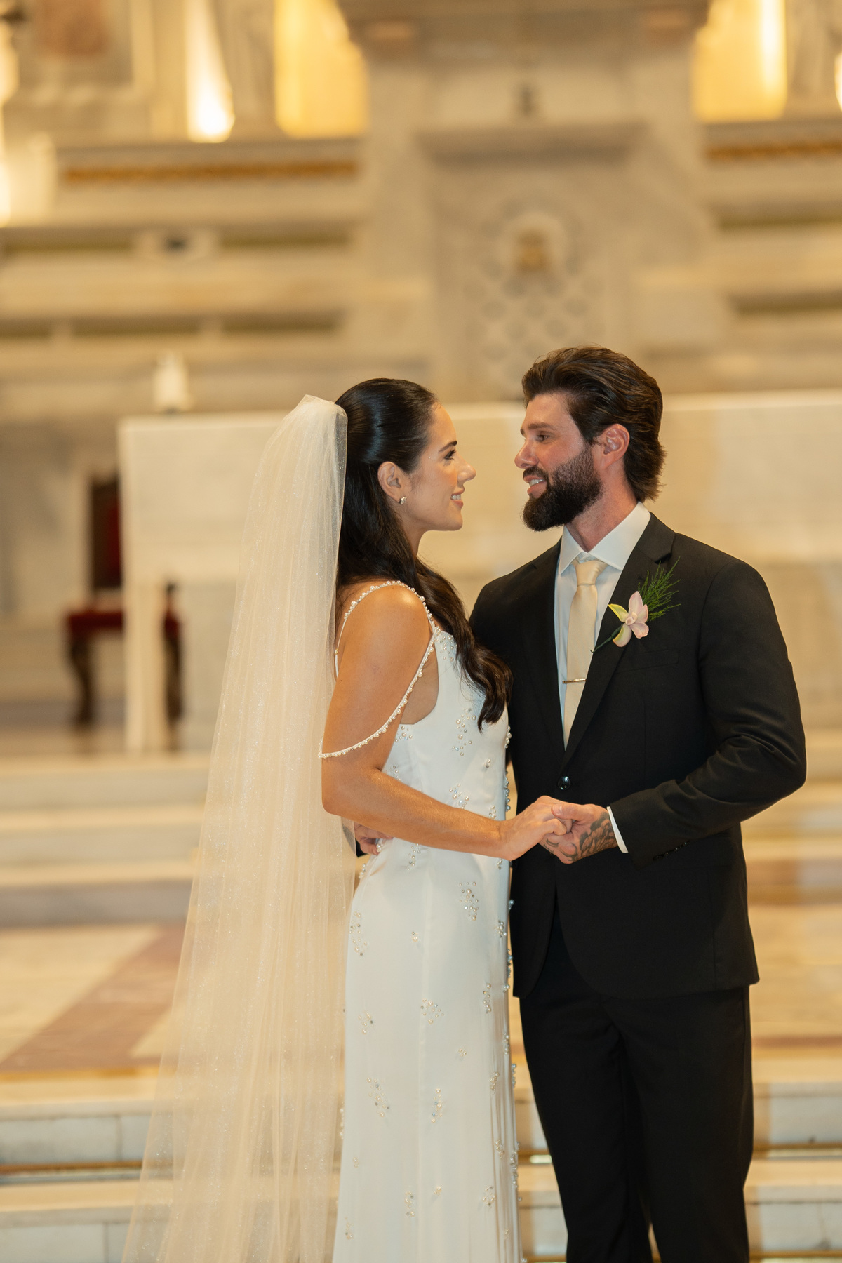 E, para esse momento, escolhi caminhar por uma estética mais clássica, quase atemporal, em sintonia com a imponência e a beleza da catedral.
